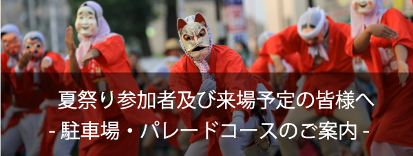 また、今夏は例年以上の酷暑が続いております。祭り当日も猛暑が予想されますので、ご観覧の際には、こまめに水分補給を行う等、熱中症対策をお願いします。