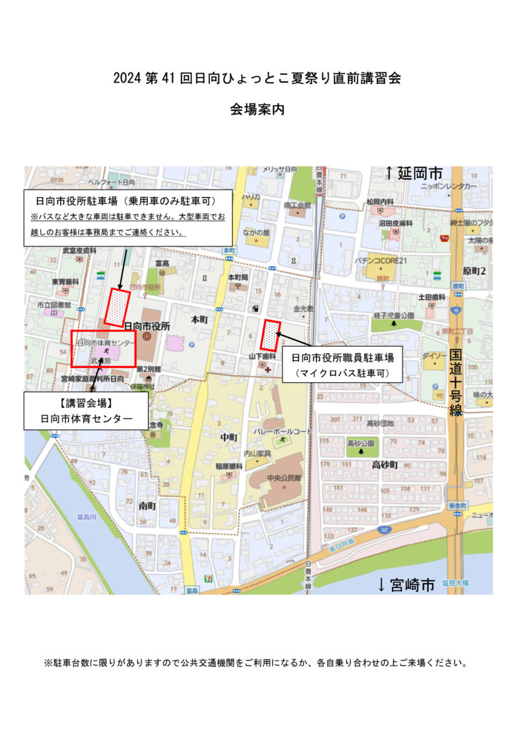 【駐 車 場】 日向市役所来客駐車場又は日向市職員駐車場